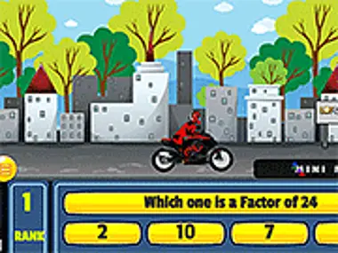 Bike Racing Math Factors ایک مزے دار ریاضی کا کھیل ہے۔ ریس جیتنے کے لیے موٹرسائیکل کی رفتار بڑھانے کے لیے صحیح جواب پر کلک کریں۔ غلط جواب پر کلک کرنے سے آپ کی موٹرسائیکل کی رفتار کم ہو جائے گی۔ اس کھیل میں، آپ کو ایک نمبر کے فیکٹر پر کلک کرنا ہوگا۔ مزید گیمز صرف y8.com پر کھیلیں۔