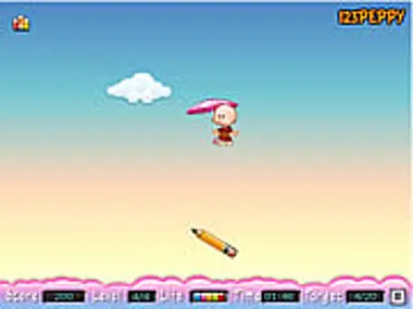 Catch the books and pencils you find floating in the sky. Avoid the clouds as you will lose a life.
