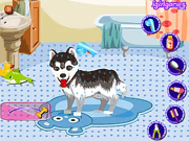 The dogs are always fond of bathing.Now you could give the cute dog bathing and dress it up.It's very fun and enjoy it.